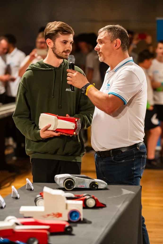 Course en Cours est un concours national destiné aux collégiens et lycéens qui les invite à imaginer, concevoir, fabriquer et faire courir une mini-voiture propulsée par un moteur électrique, avec l’objectif de susciter des vocations pour les filières scientifiques et technologiques d’excellence
